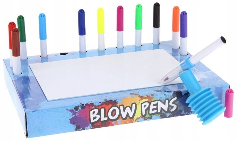 Blow Pen to fantastyczny zestaw, który zrewolucjonizuje tworzenie rysunków! Wystarczy włożyć końcówkę markera do specjalnej dyszy i zdmuchnąć powietrze, co spowoduje uwolnienie chmurki atramentu.