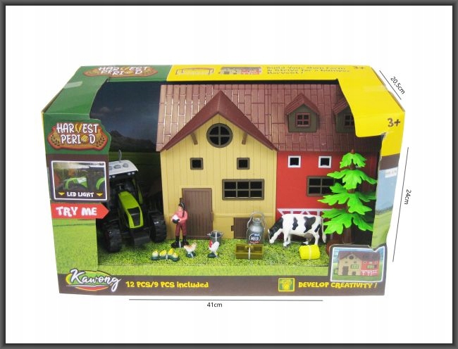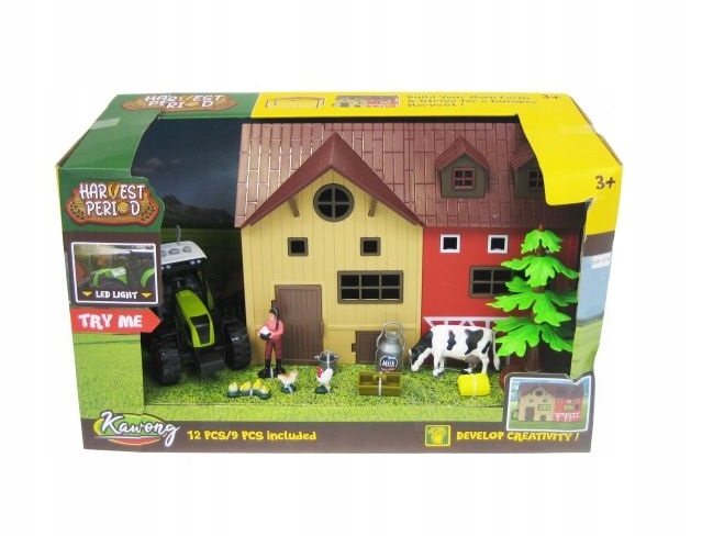 W zestawie znajduje się traktor z efektem świetlnym i dźwiękowym, który działa po naciśnięciu przycisków na dachu. Otwierany budynek farmy, figurki zwierząt i postacie pozwalają dziecku wcielać się w rolę farmera, dbającego o swoje gospodarstwo. Traktor porusza się płynnie, a staranne wykonanie poszczególnych elementów gwarantuje trwałość i bezpieczeństwo podczas zabawy.