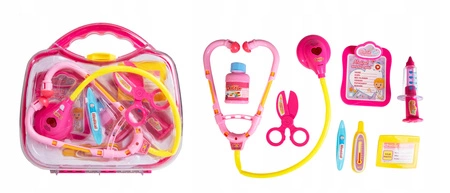 W komplecie znajdują się realistyczne akcesoria medyczne, takie jak stetoskop, termometr, strzykawka czy nożyczki. Dodatkową atrakcją są efekty świetlne i dźwiękowe, które czynią zabawę bardziej realistyczną i wciągającą. Wszystkie elementy zostały wykonane z bezpiecznych materiałów, dzięki czemu są odpowiednie dla dzieci i wygodne w użytkowaniu.