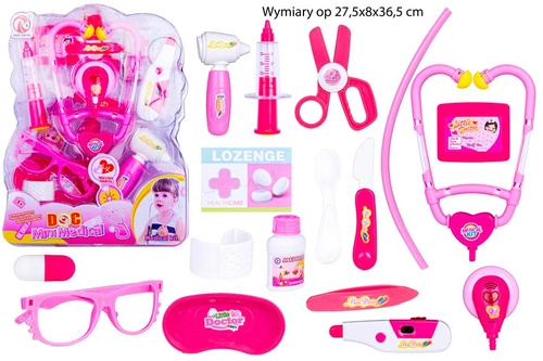 ZESTAW LEKARSKI RÓŻOWY ŚWIECACY STETOSKOP PLEKSA / 48/24 Wymiary op 27,5x8x36,5 cm