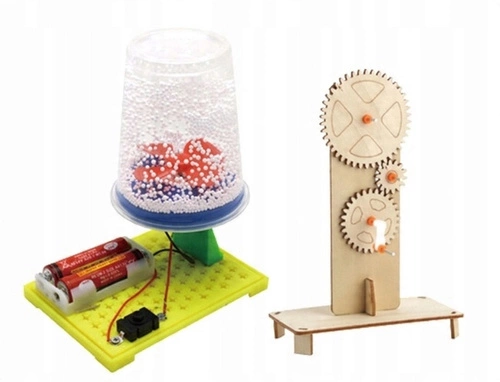 Zawartość zestawu: elementy do budowy mechanizmu kół zębatych, moduł „latający śnieg” z kubeczkiem i styropianowymi kulkami, mini odkurzacz z turbiną, płytki konstrukcyjne, silniczki, przełączniki, przewody, śrubki i narzędzia montażowe