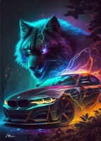 Diamentowa Mozaika Haft Wilka Z Autem Na Tle Zorzy 30x40cm