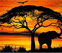 Diamentowa Mozaika Słoń Na Tle Zachodzącego Słońca 30x40 Cm Kreatywne