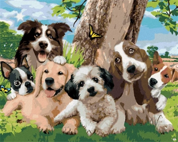 Diamentowa Mozaika Rodzina Piesków Pod Drzewem 30X40 Cm Kreatywne Diamenty