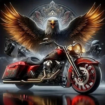 Diamentowa Mozaika Czerwony Motor Na Tle Orła 30x40 Cm Kreatywne Diamenty