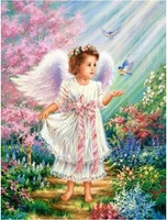 Diamentowa Mozaika Mały Aniołek Z Ptakami 30x40Cm Kreatywne Diamenty