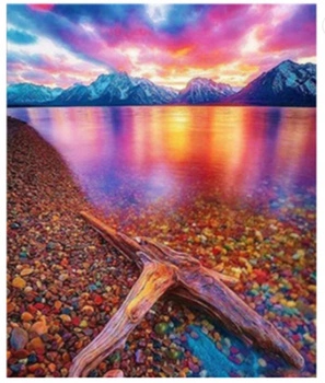 Diamentowa Mozaika Jezioro Z Kolorowymi Kamieniami 30x40 Cm Kreatywne