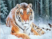 Diamentowa Mozaika Tygrys Leżący W Śniegu Haft Kreatywny 30x40 Cm